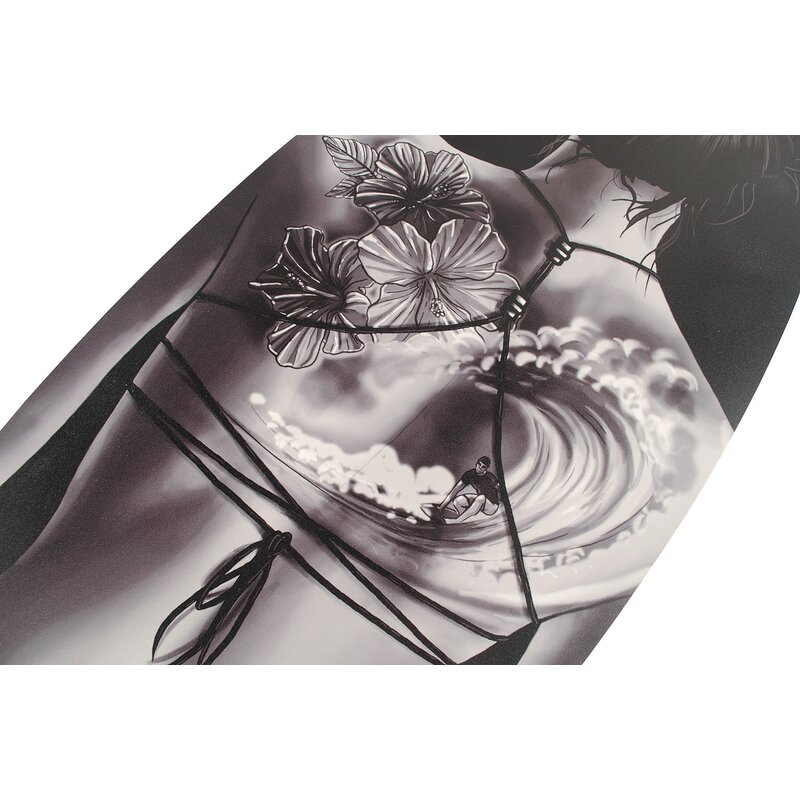 Het bord heeft geen stoppers om volledige trucvrijheid te garanderen. De boven- en onderzijde zijn voorzien van een meerlaagse, tweecomponenten PUR-lak in een moderne, matte look met een onderhoudsvriendelijk en antislipoppervlak. Het JUCKER HAWAII logo is direct in het hout gebrand.